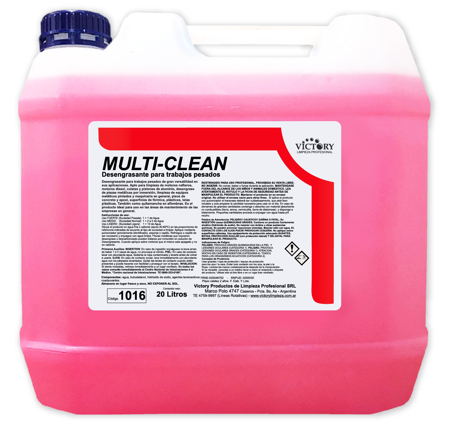 Modo de empleoAplicación con pulverizador, cepillo, fibra o por inmersión. Para motores y grandes superficies, usar hidrolavadora. Diluciones: 1+1 fuerte, 1+2 a 1+5 media, 1+10 ligera.