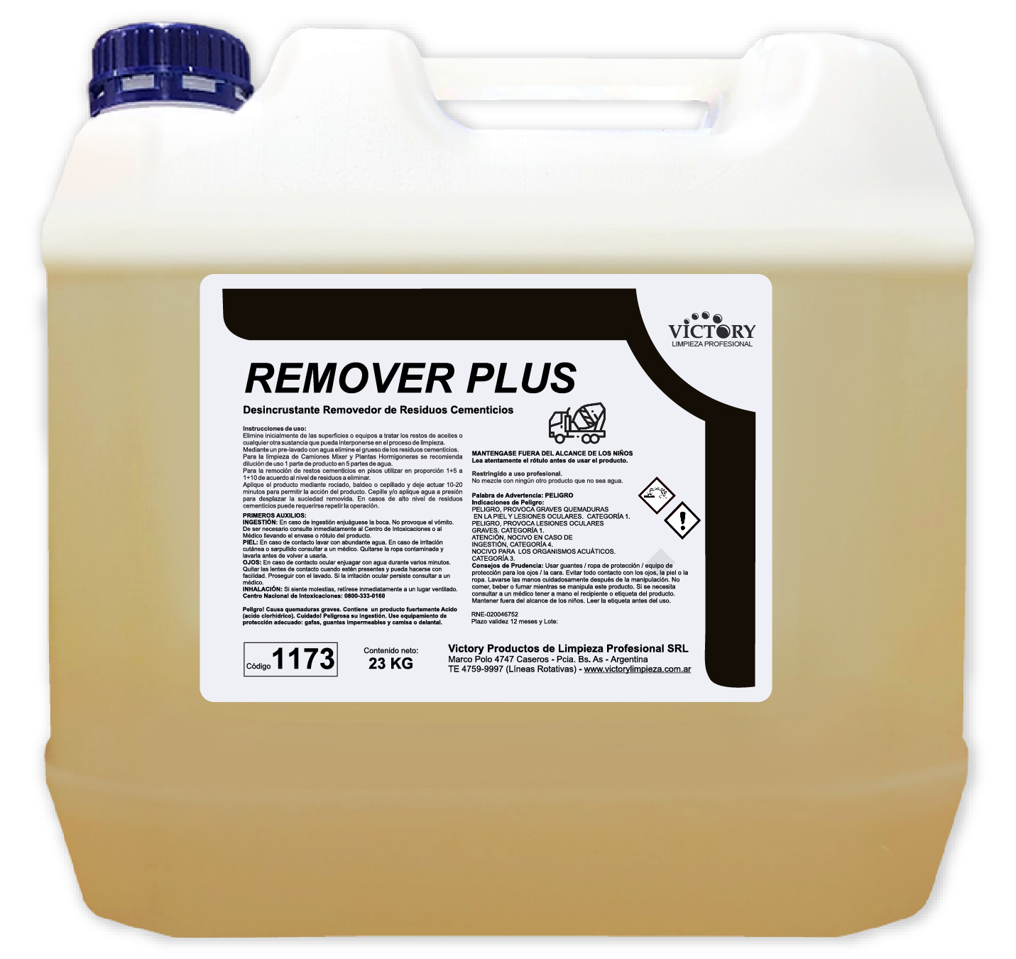 Limpiador desincrustante removedor de residuos cementicos, con inhibidores de corrosión específicos, que protegen al hierro en el caso de lavado de camiones mixer de hormigón y sus componentes como así también la limpieza completa en plantas hormigoneras y trompitos.
