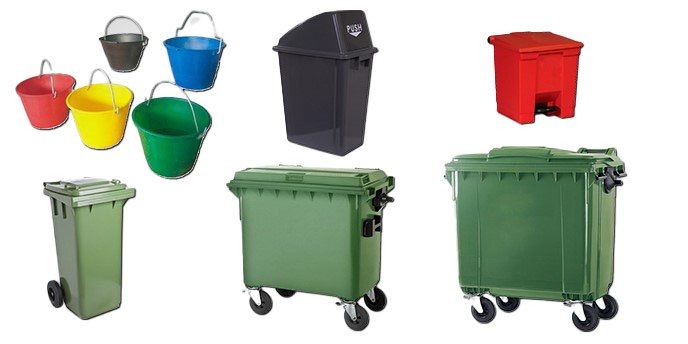 Amplia gama de cestos, baldes y contenedores de variados colores y diseños. Determinados modelos son de material inyectado y otros retro moldeados de alta calidad y durabilidad. Algunos con sistema de apertura pedal y aptos HACCP. Cestos de 15 a 1000L.