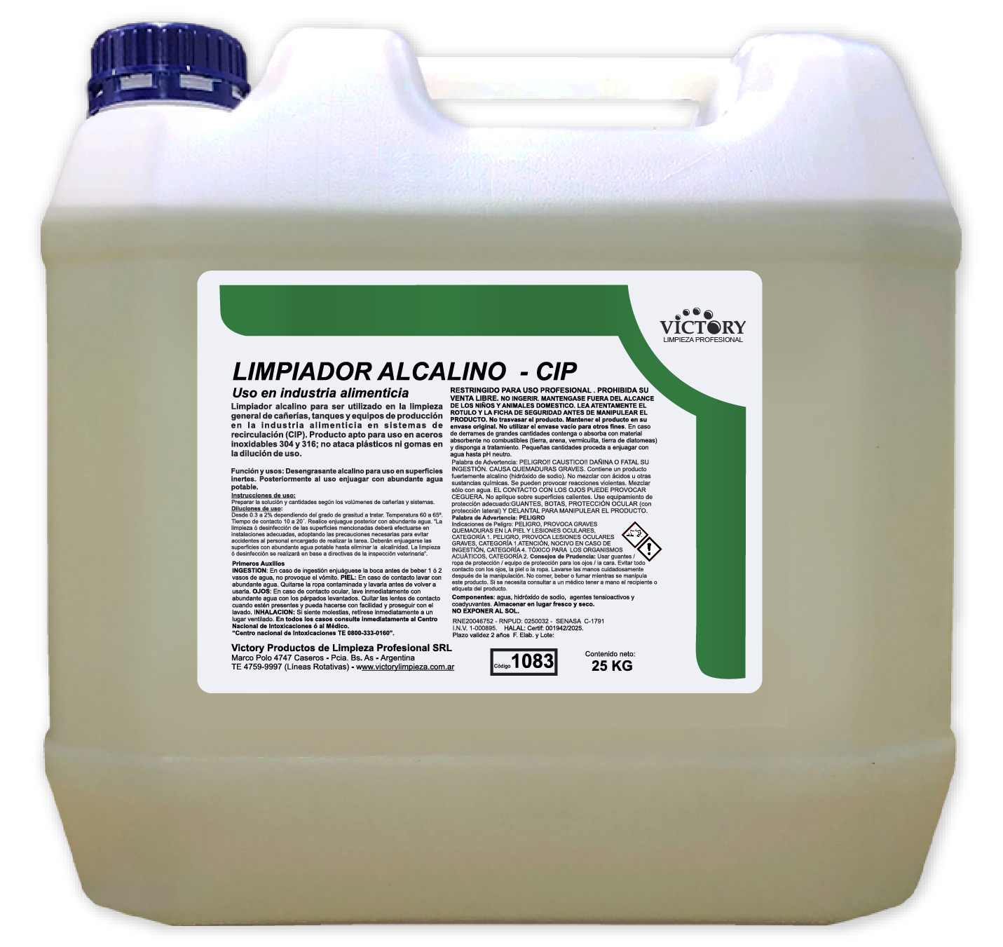 Limpiador alcalino para ser utilizado en la limpieza general de cañerías, tanques y equipos de producción en la industria alimenticia y sistemas de recirculación (CIP). Producto apto para uso en aceros inoxidables 304 y 316; no ataca plásticos ni gomas en la dilución de uso. Ideal en uso en mantequeras por su propiedad como desmoldante.
