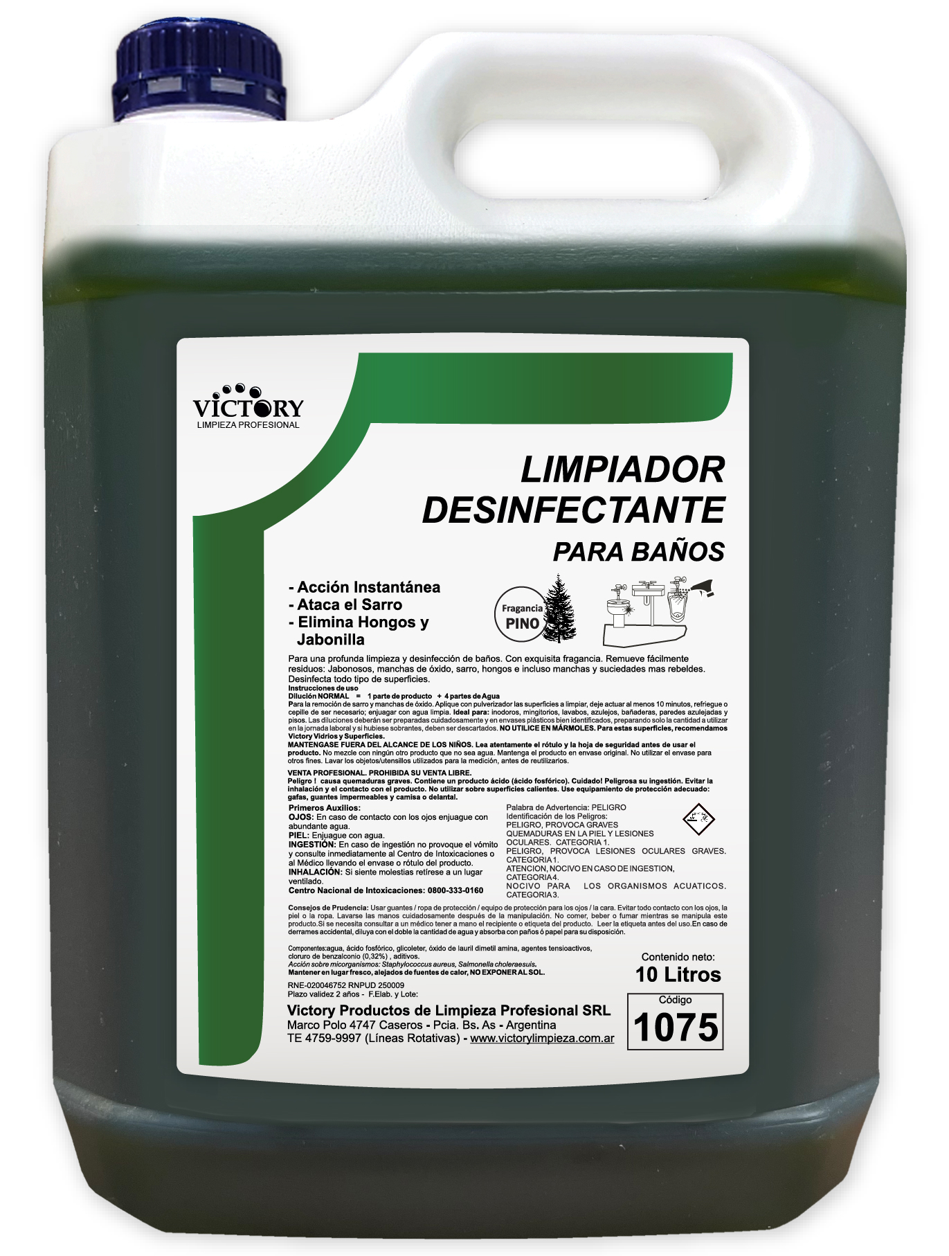 Modo de empleoAplicar con pulverizador. Para pisos, paredes y grandes superficies, preparar la solución en un balde. Dilución: 1+4 media, 1+10 ligera. En caso de sarro, usar puro y refregar con paño abrasivo.