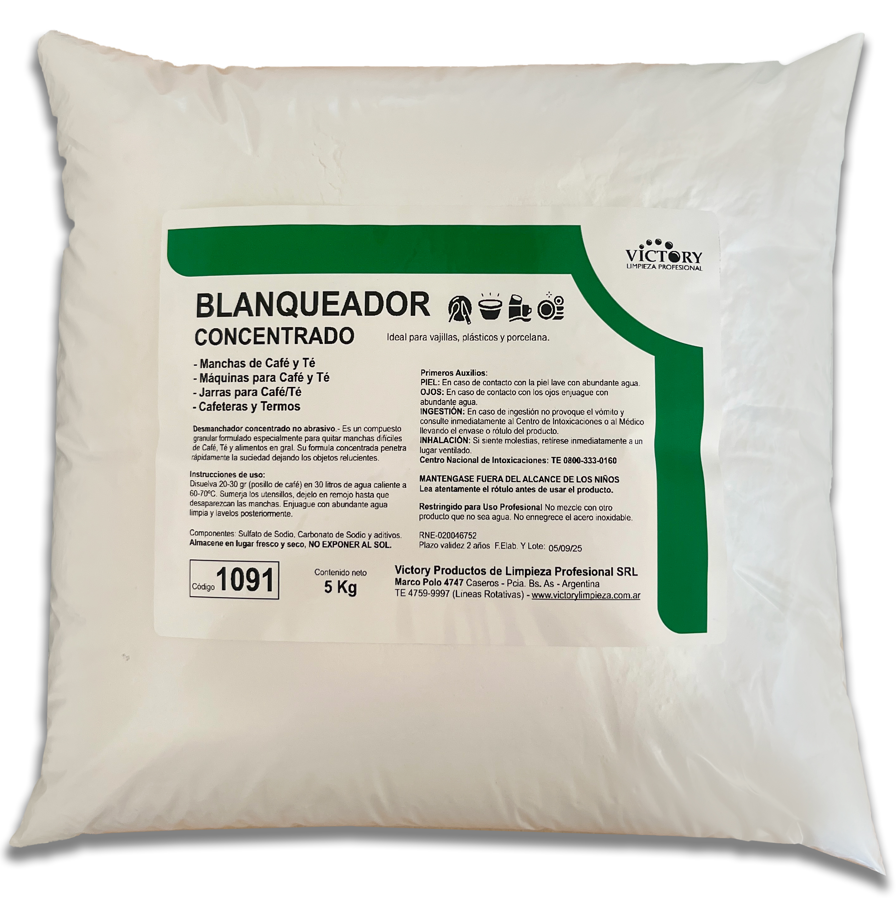 Polvo desmanchador concentrado no abrasivo. Compuesto granular para quitar manchas difíciles de café, té y alimentos en general. Su formula penetra rápidamente, dejando los objetos relucientes.