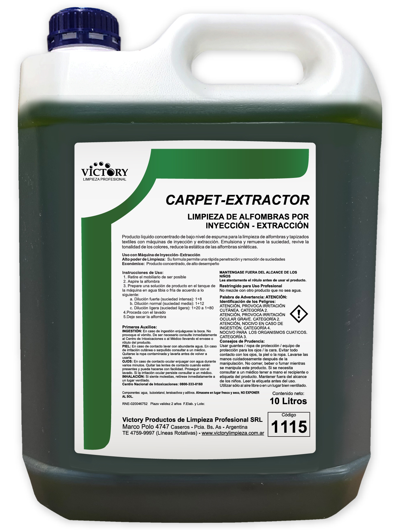Producto líquido concentrado diseñado para la limpieza de alfombras y tapizados textiles. Apto para sistemas de inyección y extracción. Revitaliza los colores y reduce la estática en alfombras sintéticas.