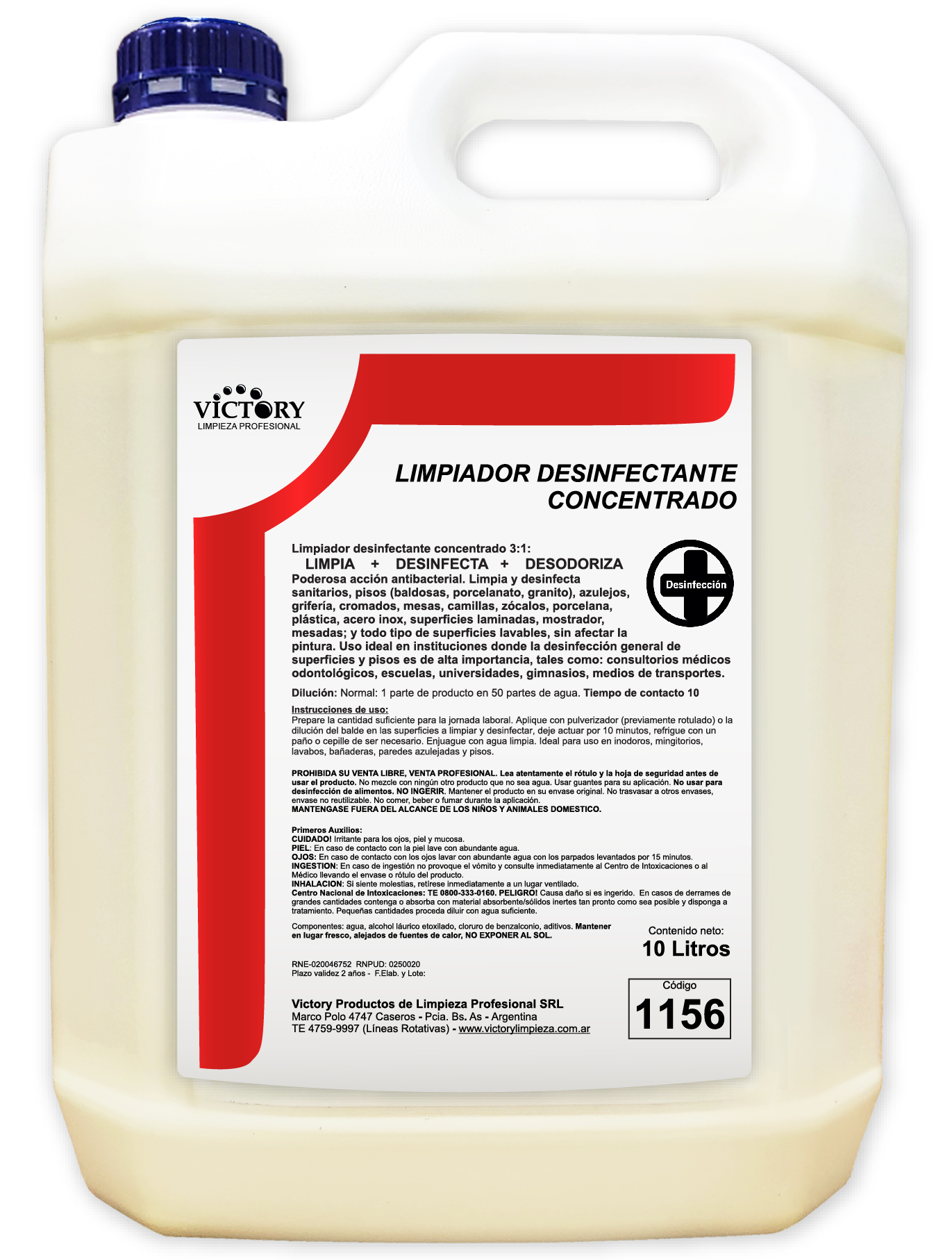 Limpiador desinfectante concentrado 3:1. Limpia profundamente + desinfecta + desodoriza. Gran poder de limpieza, poderosa acción antibacterial. Recomendado para uso hospitalario e instituciones: pisos, mesadas, barandas, colchones, etc.