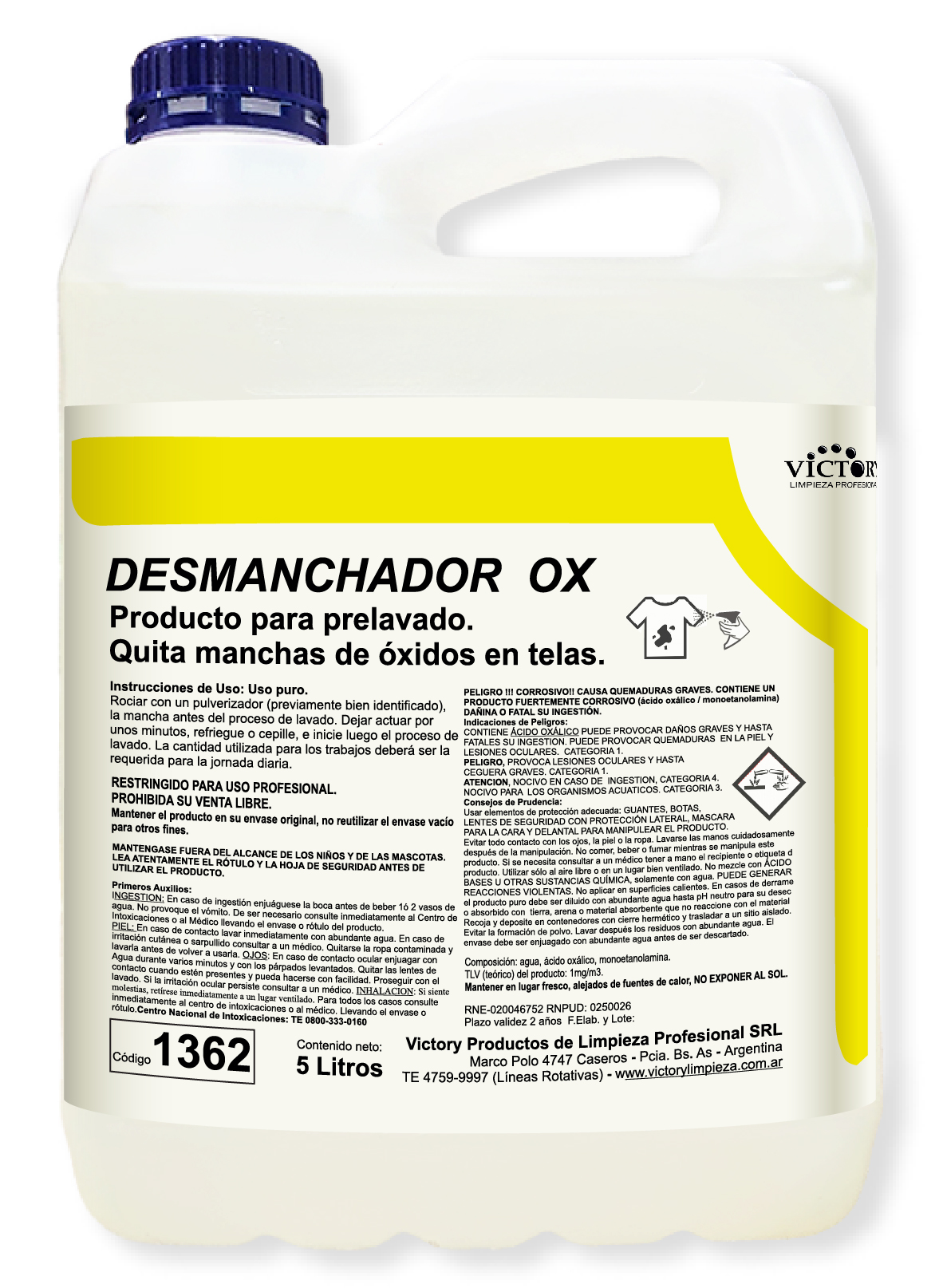Desmanchador formulado para la disolución y remoción de manchas de óxido de hierro en telas como también en la mayoría de manchas provenientes de otros metales u óxidos metálicos.