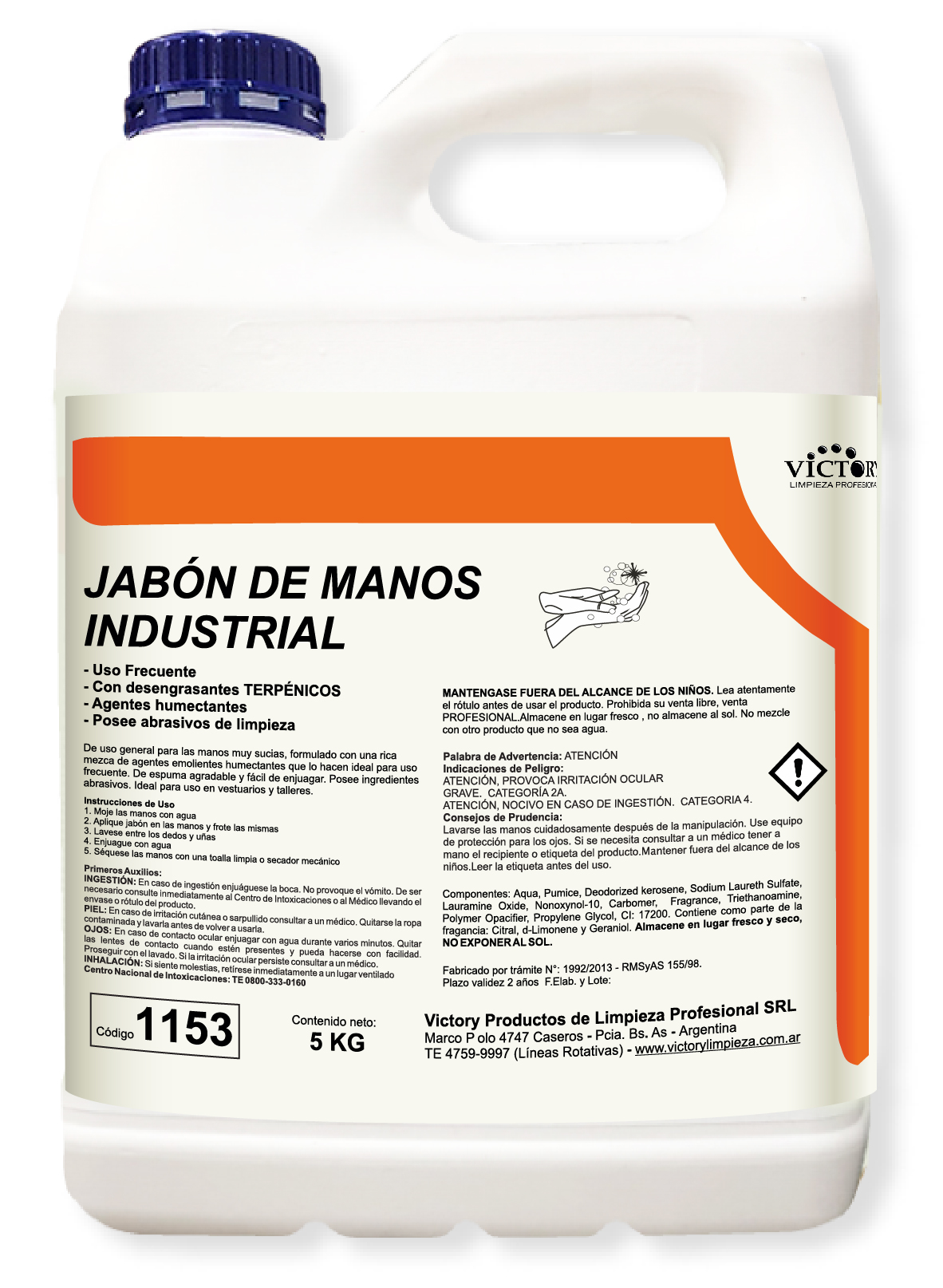 Jabón de manos industrial para limpieza de suciedades pesadas. Con micropartículas y agentes protectores para el cuidado de la piel. Posee desengrasantes terpénicos que potencian el poder de limpieza, removiendo mas facilmente la grasa de las manos.
