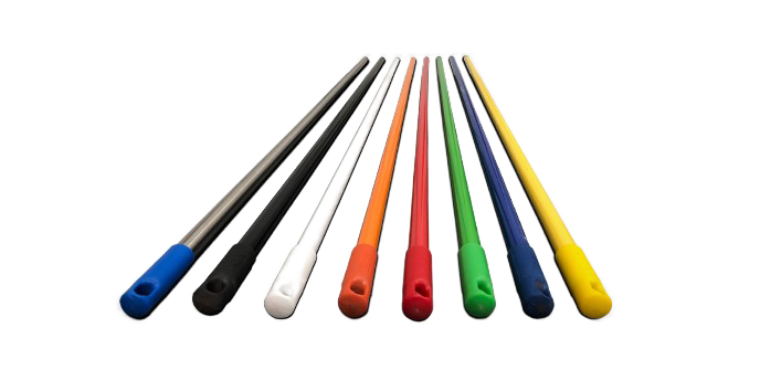 La altura, el material de fabricación y los colores hacen que sean cabos ergonométricos para el uso frecuente del personal y totalmente sanitario; con una amplia gama de colores que permiten ser utilizados en diferentes áreas, evitando así las contaminaciones cruzadas, tanto en empresas alimenticias como en áreas de salud.