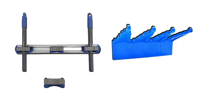 Sujetador de cabos y elementos de limpieza. Ideal para organizar las Estaciones de limpieza de las diferentes áreas de una empresa e impedir que los accesorios de limpieza estén en contacto con el piso.